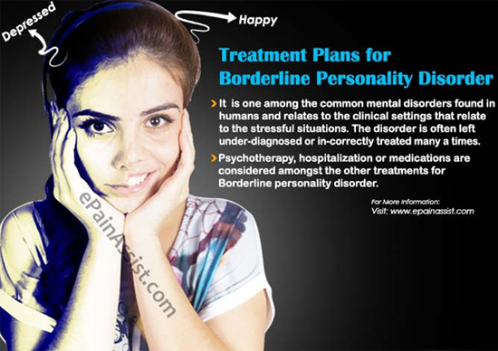 Psychotherapy is the primary treatment for borderline personality disorder. Treatments should be based on the needs of the individual, rather than upon the general diagnosis of BPD. Medications are useful for treating comorbid disorders, such as depression and anxiety. Short-term hospitalization has not been found to be more effective than community care for improving outcomes or long-term prevention of suicidal behavior in those with BPD.